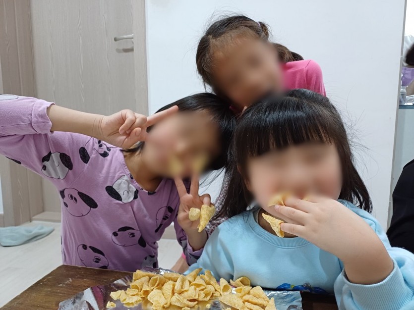 아이들이 즐겁게 대화를 나누며, 간식을 배부르게 먹을 수 있었습니다!